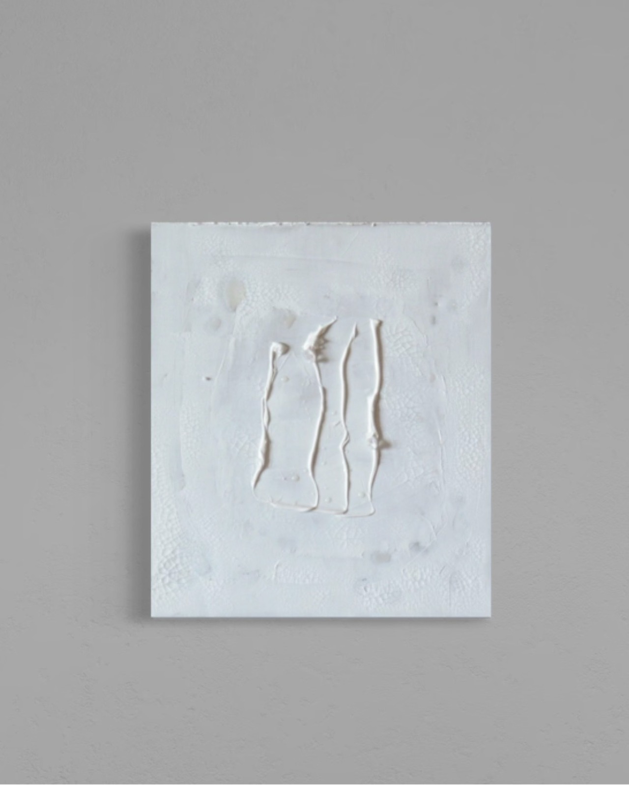 Pure white textures, crafted with modeling paste, reminiscent of fine porcelain.